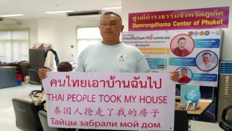 หนุ่มจีนร้องศูนย์ดำรงธรรมช่วย พร้อมโชว์ป้าย “คนไทยเอาบ้านฉันไป”