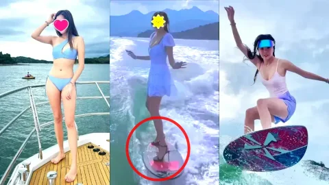 ซู่ซี่หยาง มิสซิสไชนีสอเมริกันที่สร้างความฮือฮา เล่นรองเท้าส้นสูงเล่นสกีน้ำอย่างคล่องแคล่ว