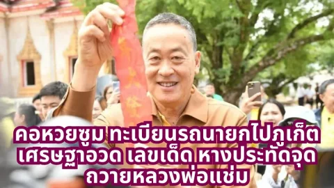คอหวยซูม ทะเบียนรถนายกไปภูเก็ต เศรษฐาอวด เลขเด็ด หางประทัดจุดถวายหลวงพ่อแช่ม