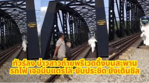 ทัวร์ลง บ่าวสาวถ่ายพรีเวดดิ้งบนสะพานรถไฟ เจอบีบแตรไล่-ขับประชิด ยังเดินชิล