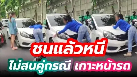 สุดระทึก! เก๋งชนแล้วหนี แต่มีคู่กรณีเกาะหน้ารถ..คนขับไม่สน รีบซิ่งออกไปทันที