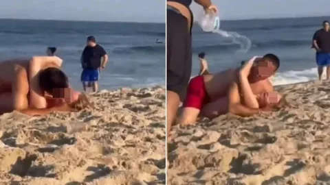 ดุดันไม่เกรงใจใคร! คู่รักซั่มกัuบนหาดทราย..วัยรุ่นทนไม่ไหวเลยเอาน้ำสาด