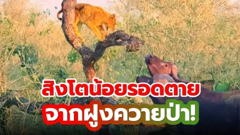 สิงโตน้อยรอดตๅย จากฝูงควายป่า!