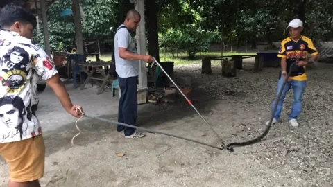 งูสิงดงยักษ์ โผล่ใต้กระบะ วันพระใหญ่ เชื่อให้โชค