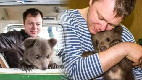 มิตรภาพข้ามสายพันธุ์ นักบินช่วยชีวิตลูกหมีน้อย สร้างสายสัมพันธ์อันแน่นแฟ้น