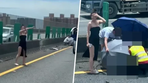 เกิดอุบัติเหตุบนถนน มีสาวสวยมาช่วยโบกรถ..แต่หลายคนโฟกัสผิดจุด