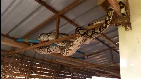 งูเหลือมยักษ์ 5 เมตร สุดชิล!นอนนิ่งบ้านหรู