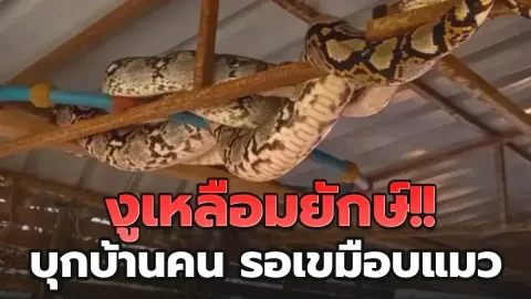 งูเหลือมยักษ์ 5 เมตร สุดชิล! นอนนิ่งบ้านหรู รอเขมือบแมว