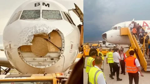ลูกเห็บตกใส่เครื่องบิน จมูกเสียหายและกระจกคนขับแตก