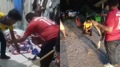 ลุงผวา! เจอจงอางยักษ์ซุกราวตาผ้าห้องนอน หวิดนอนกับงู