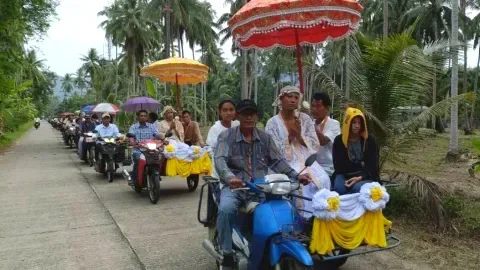 สีสันนาคเพื่อนรัก!นั่ง จยย.พ่วงข้าง แห่เข้าวัด อุปสมบทพร้อมกัน ญาติแห่รำหน้านาค เชื่อสิริมงคล