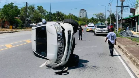 กระบะเสียหลักเฉี่ยวฟอร์จูนเนอร์ – จยย.ชนท้ายกระบะ คนเจ็บ
