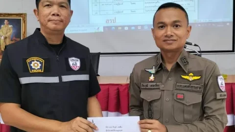 นักธุรกิจใหญ่เมืองกรุงมอบเสื้อสะท้อนแสงและกระบองไฟให่ตำรวจสภ.เมืองนครศรีธรรมราชใช้ใส่เพื่อปฏิบัติหน้าที่ด้วยความปลอดภัยในช่วงเวลากลางคืน