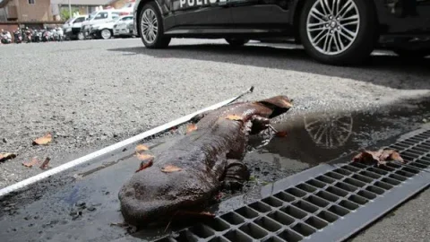 ปรากฏการณ์ประหลาด! ฝนถล่มญี่ปุ่น พบ "ซาลาแมนเดอร์ยักษ์ญี่ปุ่น" สายพันธุ์ผสม ยาว 1.3 เมตร ริมแม่น้ำคะโมะงะวะ