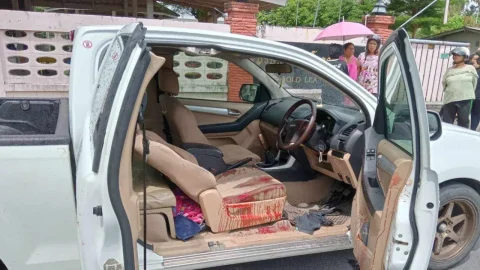 หนุ่มถูกยิงเจ็บขับกระบะหาเมียช่วย ที่แท้ลักโต๊ะเหล็กล้งผลไม้ ถูกรปภ.ยิงใส่