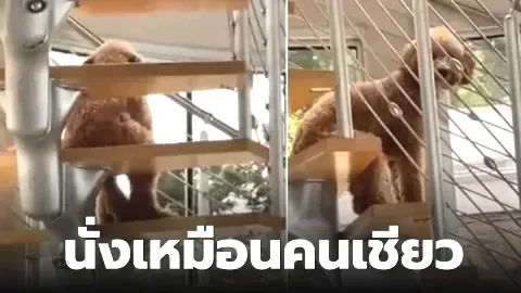 นึกว่าใครนั่งอยู่ที่บันได..กลับกลายเป็นเจ้าหมา ฮาเลยทีนี้!