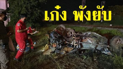 พังยับ! เก๋ง พุ่งชนฝ่าแผงกั้น โดนรถไฟชนจังๆ