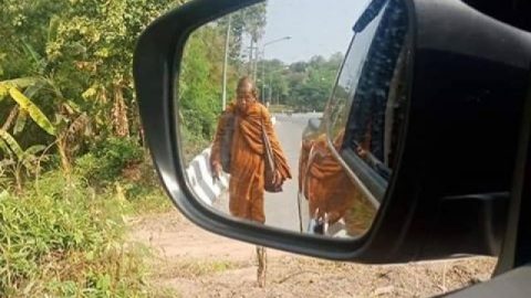 หลวงตาชื่นที่กำลังเป็นข่าวทางโชเชียล ท่านเดินธุดงค์มาถึงเขตอำเภอโพนสวรรค์แล้ว