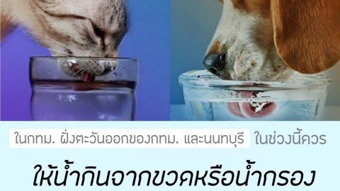 ช่วงนี้แนะนำให้ทั้งคน ทั้งหมาแมวกินน้ำขวดหรือน้ำกรอง งดน้ำประปาไปก่อนน้า 🐶