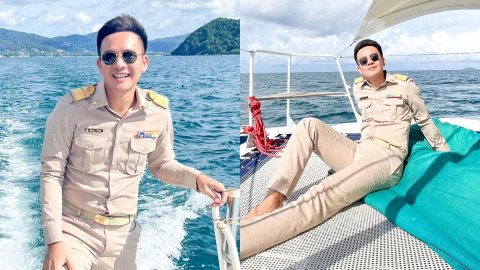 ไม่มีตัดต่อ! ครูหนุ่มสยบดราม่า ใส่ชุดข้าราชการเที่ยวทะเล โพสท่าอย่างเท่