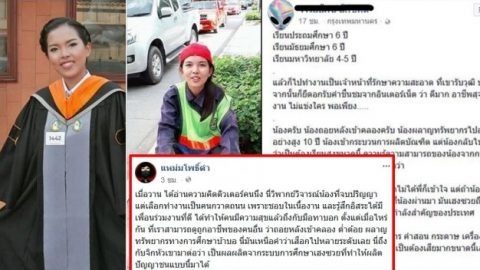 เพจดังจวก ‘ติวเตอร์’ โพสต์ดูถูก ‘น้องอ้อม’ เรียนจบปริญญา แต่เลือกทำงานเป็นคนกวาดถนน