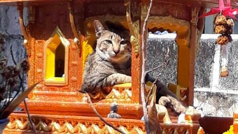 อย่างฮา!! เจ้าของตามหาแมวไม่เจอ สุดท้ายพบมันนั่งชม้อยชม้ายชายตาอยู่ที่ศาลตายาย