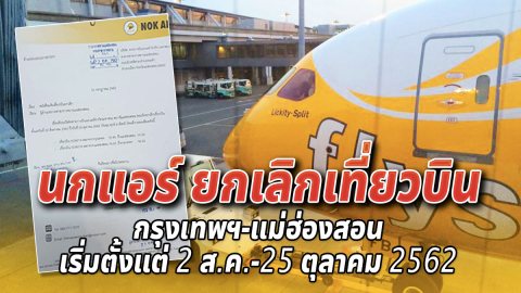 'นกแอร์' ประกาศยกเลิกเที่ยวบิน กรุงเทพฯ-แม่ฮ่องสอน เริ่มตั้งแต่ 2 ส.ค.-25 ตุลาคม 2562