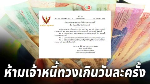 ราชกิจจานุเบกษาประกาศกฎหมายใหม่ ห้ามทวงหนี้เกินวันละ 1 ครั้ง - ห้ามทวงตอนกลางคืน เริ่ม 21 พ.ย.นี้