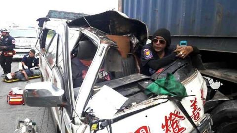 "คนดีผีคุ้ม" รถพยาบาลสว่างประทีป ประสบอุบัติเหตุชนท้ายรถพ่วง