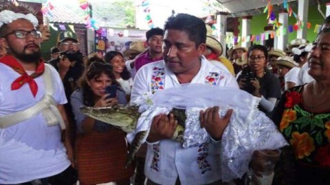 ชื่นมื่น! นายกเทศมนตรีของชนเผ่าในเม็กซิโก แต่งงานกับ "เคย์แมน" เจ้าสาวจระเข้น้อย เชื่อจะนำโชคมาให้ชาวบ้าน