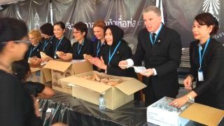 คณะคู่สมรสทูตฯ 9 ประเทศ ร่วมแจกแซนด์วิช-นมเม็ด ชื่นชมชาวไทยจงรักภักดีอย่างไม่เคยเห็นในประเทศใดมาก่อน