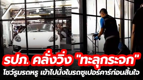 ไม่มีกุญแจ! หนุ่ม รปภ. คลั่งวิ่ง "ทะลุกระจก" โชว์รูมรถหรู เข้าไปนั่งในรถซูเปอร์คาร์ก่อนสิ้นใจตๅย