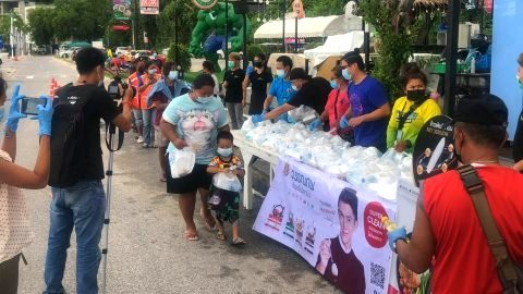 ร้านอาหารพัทยาใจบุญ แจกอาหาร แอลกอฮอล์ล้างมือ ให้คนลำบากพิษโควิด