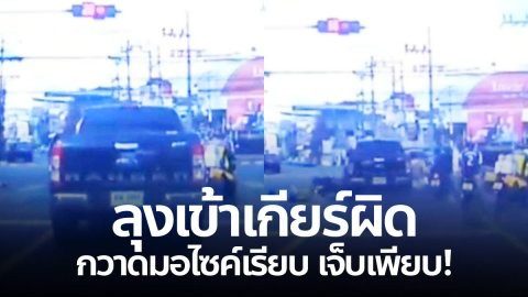 นาทีชีวิต! ลุงเข้าเกียร์ผิด กวาดมอไซค์เรียบ บาดเจ็บหลายราย