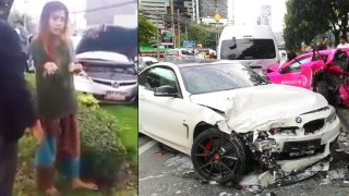 เน็ตไอดอลขับ BMW ชนยับ 9 คันรวด บอกอยากตาย (clip)
