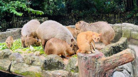 แมวส้มสร้างเรื่องอีก! หลังทำตัวเนียนใช้ชีวิตกับ "คาปิบารา" ในสวนสัตว์ "Negara" ที่กรุงกัวลาลัมเปอร์