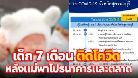 ด่วน ด.ญ.วัย 7 เดือน ติดโควิด หลังแม่พาไปธนาคารและตลาด อ.สองพี่น้อง จ.สุพรรณบุรี