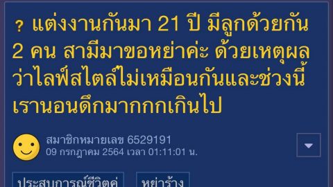 แต่งงานกันมา 21 ปี มีลูก 2 คน สามีมาขอหย่า ด้วยเหตุผล ไลฟ์สไตล์ไม่เหมือนกัน??