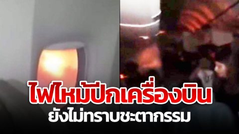 ช็อกทั้งลำ! ไฟไหม้ปีกเครื่องบิน ยังไม่ทราบชะตากรรม