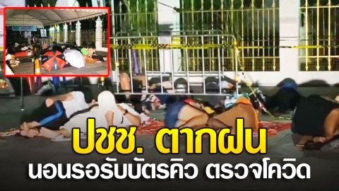 ที่เดียวในโลก ปชช. ต้องตากฝน นอนรอรับบัตรคิว ตรวจโควิด
