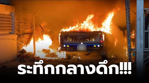 ระทึกกลางดึก เสียงดังสนั่น เพลิงลุกไหม้เผาโรงจอดรถ
