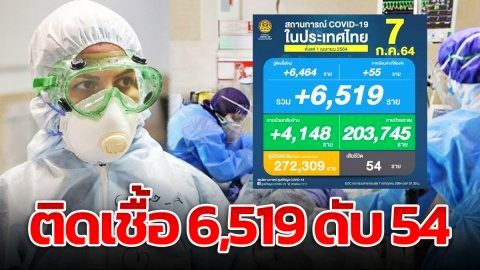 ยอดพุ่ง! ผู้ติดเชื้อโควิดวันนี้ 6,519 ราย เสียชีวิตเพิ่ม 54 ราย