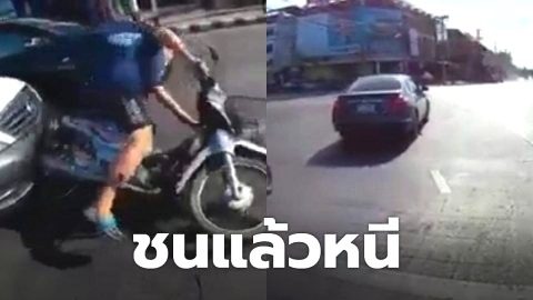 เก๋งคลั่งชน จยย. กลางแยก ก่อนเร่งเครื่องหนี
