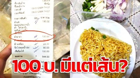 สาวโวย! สั่ง "ยำมาม่า" 100 บาท พอเปิดออกมา มีแต่เส้นมาม่าลวกเปล่าๆ