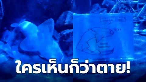ใครเห็นก็ว่าตๅย! พิพิธภัณฑ์สัตว์น้ำในฮ่องกง ติดป้ายบอก "ไม่ต้องห่วงนะ ผมแค่หลับ" หลัง "ฉลาม" นอนหงายท้อง