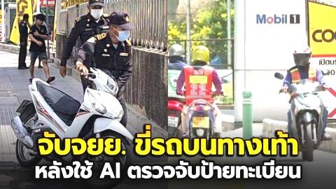 จับคาตา! เทศกิจ กทม. จับ จยย.ขี่รถบนทางเท้า หลัง นำร่องใช้ AI ตรวจจับป้ายทะเบียน