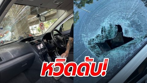 หวิดดับ! จอดติดไฟแดง เจอชิ้นส่วนทางด่วนร่วงใส่รถ