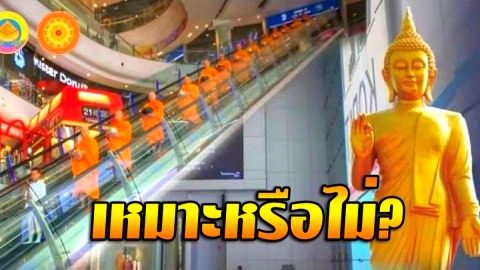 เหมาะหรือไม่ ห้างดังโคราช นิมนต์พระลงบันไดเลื่อน ตักบาตรเทโว??