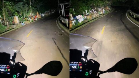 ทางน่ากลัวมาก! หนุ่มแอบหลอน ขับจักรยานยนต์ ผ่านศาลพระภูมิข้างทางเรียงเป็นแถบ