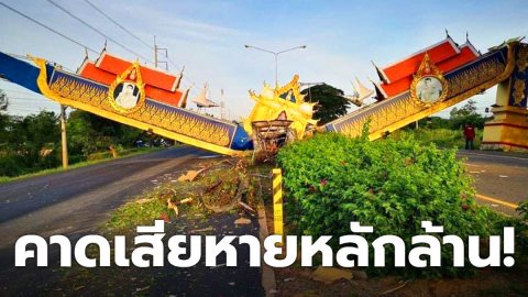 กระบะเสียหลัก ชนเสาซุ้มเฉลิมพระเกียรติ คาดเสียหายหลักล้าน!